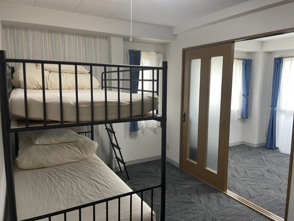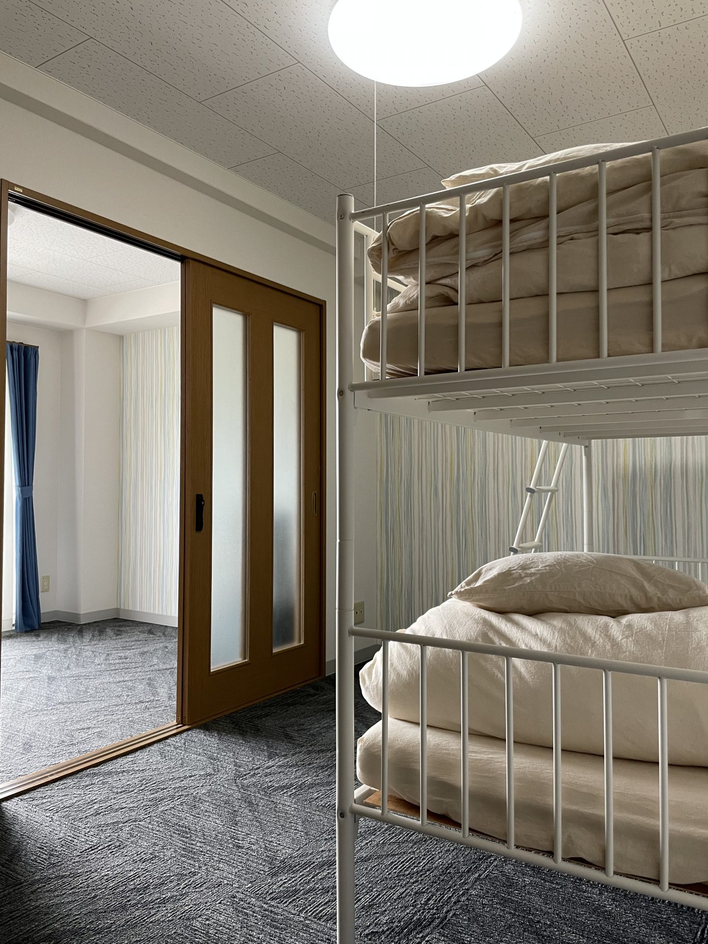 3DKのお部屋に、大型冷蔵庫や電子レンジ、洗濯機など備品もあり、最大6名様までご宿泊いただけます。